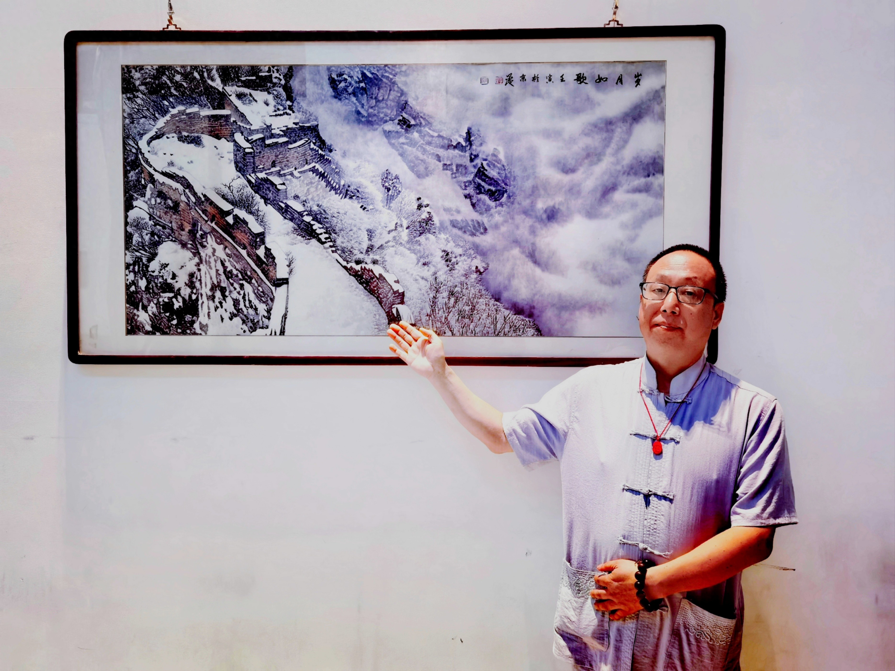 高明的艺术之路始于对传统山水画的深度研习,成于对长城与冰雪这对意象的独特发现。“长城是中华民族的脊梁,冰雪是天地间的精灵,”他如此诠释自己的创作初心,“二者相遇,恰是刚柔并济的绝佳隐喻。”